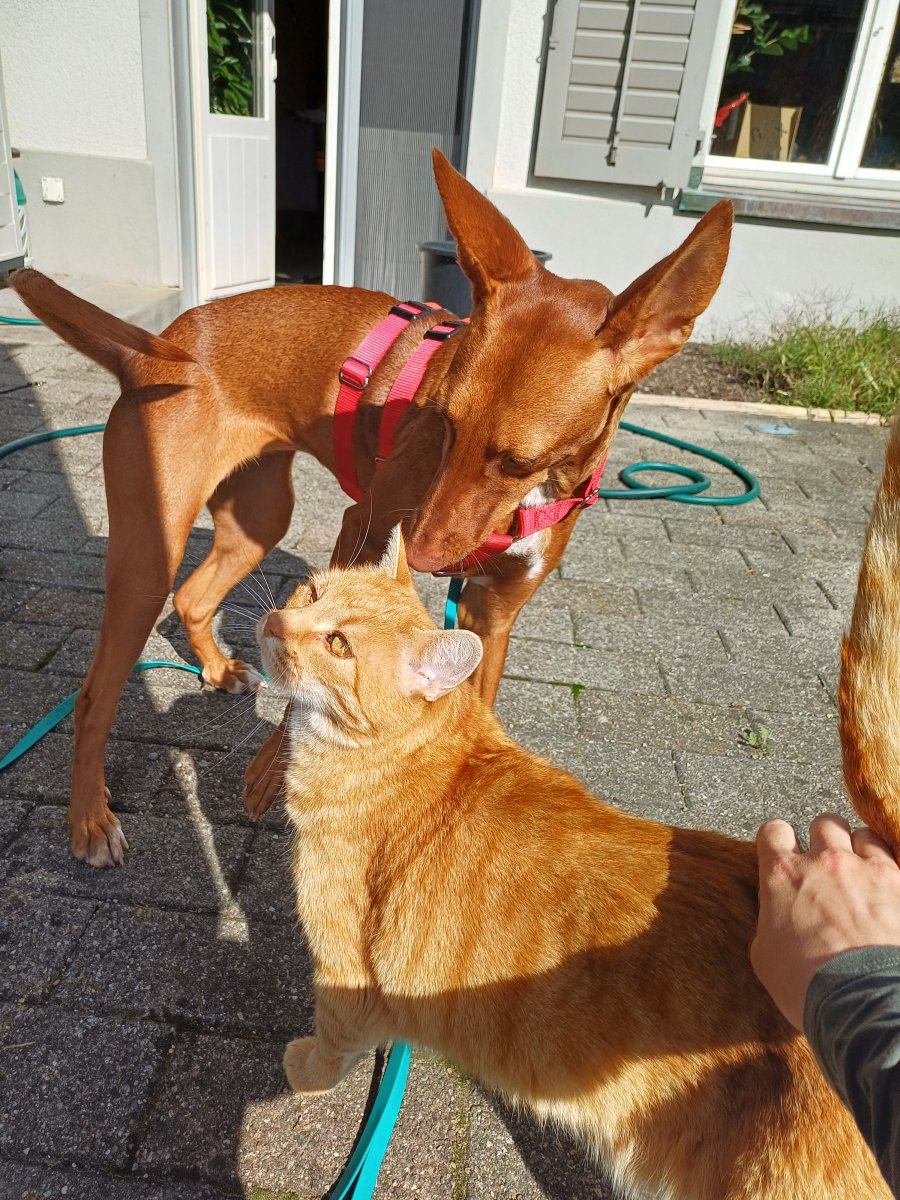 An der Leine läuft Daila, ob kurz oder lang, schon sehr ordentlich. Und wenn sie doch einmal ihrer Neugier folgt und in die Leine springt, genügt meist eine verbale Korrektur, um sie wieder zurückzuholen. Hundebegegnungen an der Leine sind noch etwas aufregend für sie und sie weiss manchmal noch nicht wie sie darauf reagieren soll. Hier darf weiter geübt werden. Ein souveräner Ersthund wäre sicher eine gute Unterstützung. Im Haus zeigt sich Daila angenehm ruhig und neugierig zugleich. Katzen findet sie spannend, akzeptiert aber schnell, dass diese lieber ihre Ruhe möchten.