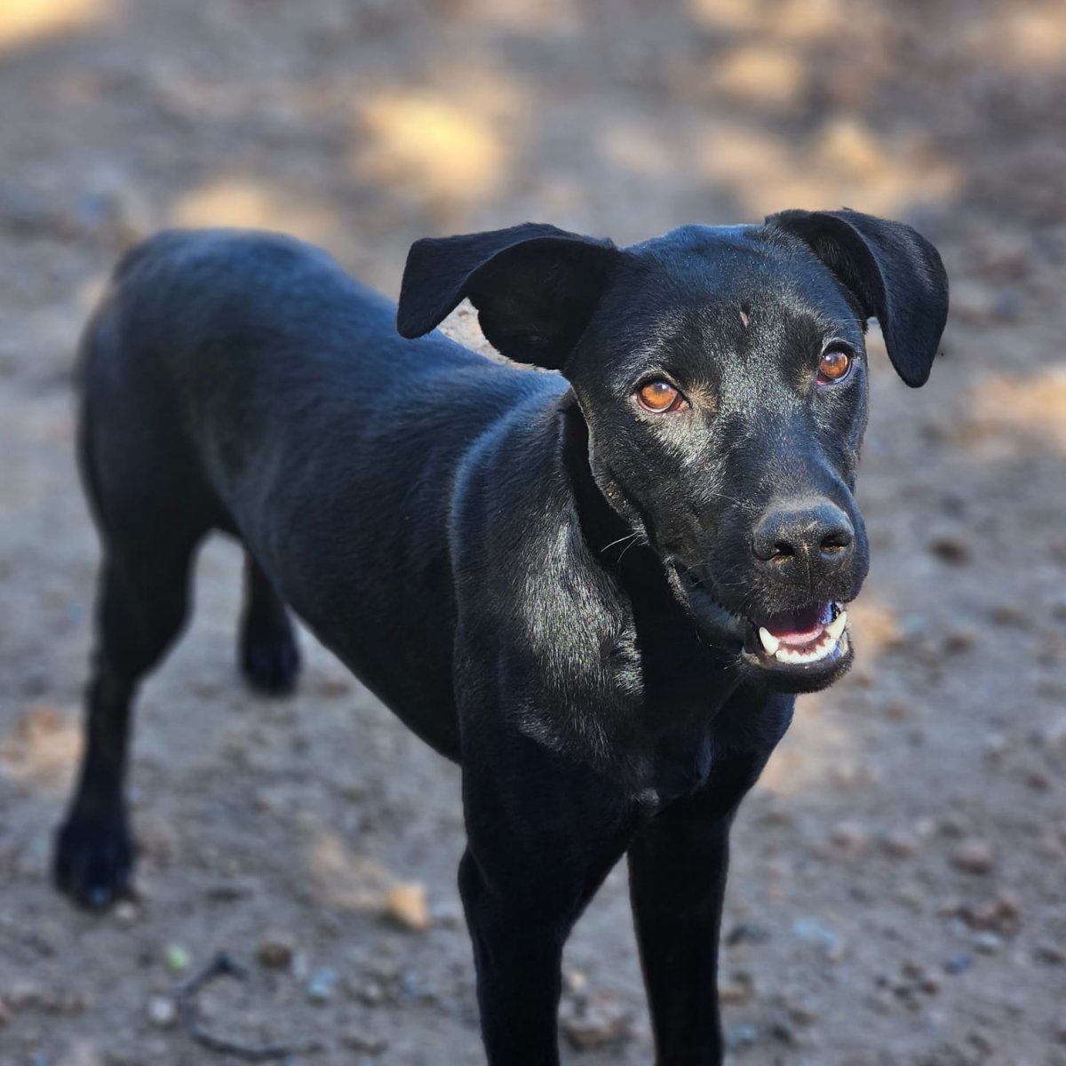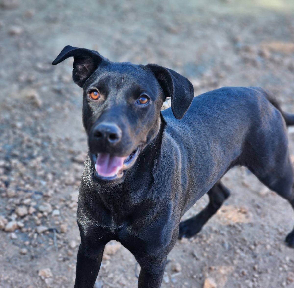 Die lackschwarze Schönheit Tilly durfte am 28. September 2025 zusammen mit Matti einen Zwinger im Refugio von Monika beziehen und die Perrera in Vinaros verlassen. Sie ist eine agile Hündin und liebt es herumzurennen. Ob sie mit Hündinnen ebenso verträglich ist wie mit Rüden können wir zum jetzigen Zeitpunkt nicht sagen. Jedenfalls hat sie ordentlich Power und kann schon mal etwas ungestüm daherkommen, jedoch stets freundlich.