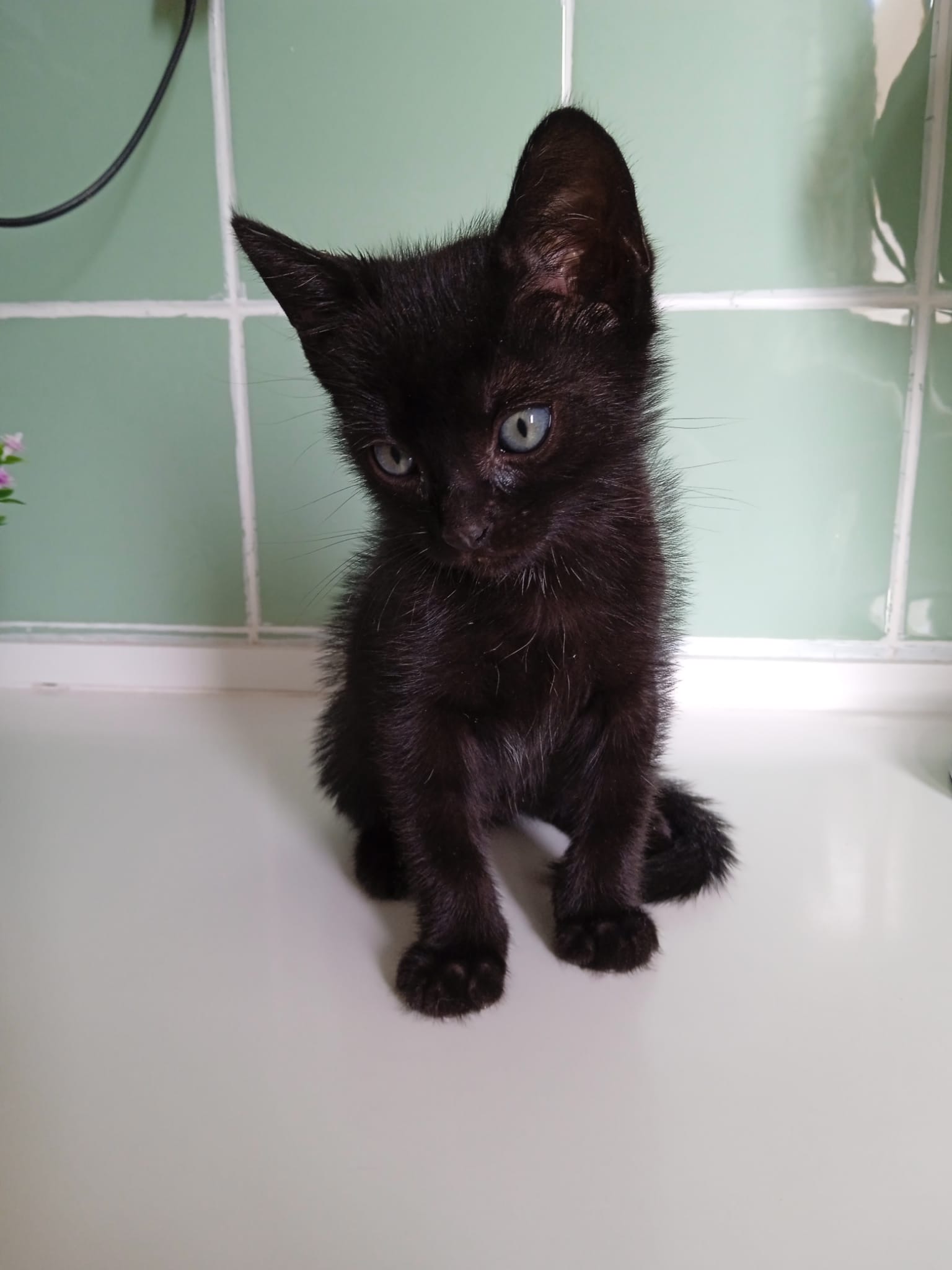 Moka wurde am 12. März 2025 auf der Strasse gefunden, da sie sich miauend und hilfesuchen unter Autos versteckt hatte. Von dort hat man sie gerettet und auf eine Pflegestelle gebracht, bis wir für sie ein Zuhause gefunden haben.
