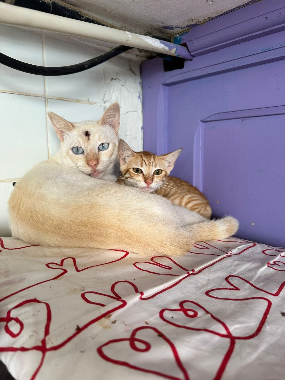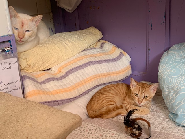 Irene und Pedro wurden am 16. Juni 2025 in einem Karton in einem Müllcontainer gefunden. Sie waren sehr klein und ausgehungert, deshalb hat man sie von dort mitgenommen und auf eine Pflegestelle gebracht, wo man sie gut versorgt.