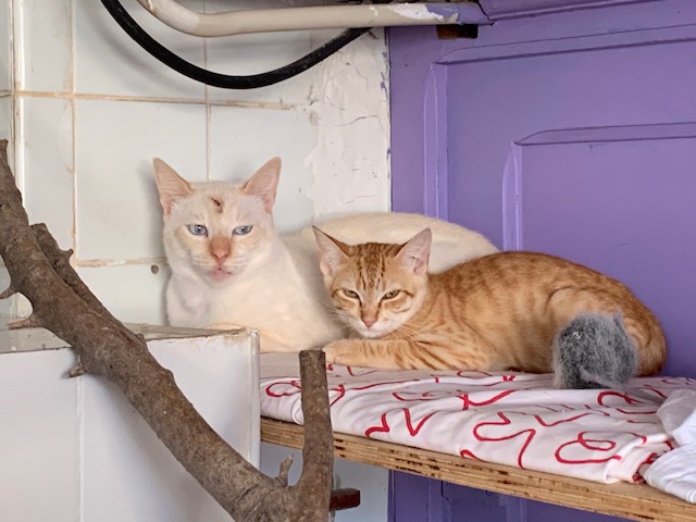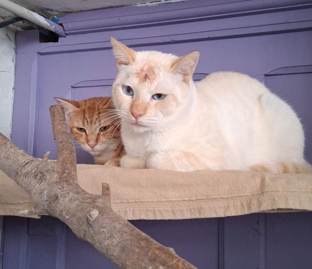 Die beiden verbindet eine enge Freundschaft: Während Azul sich noch von seiner Wunde erholt, wartet Facinas treu vor seiner Box und freut sich, wenn er ein paar Stunden herauskommt. Azul hat sich mittlerweile an Menschen gewöhnt, ist neugierig und lässt sich nach einiger Zeit, wenn er Vertrauen gefasst hat, auch anfassen. Facinas ist ein wenig schüchterner als Azul aber im Gegensatz zu vorher, wesentlich ruhiger geworden. Auch er ist ein neugieriger Kater, und schaut sich die Sachen gerne aus einer höheren Position aus an.